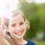 - Young Girl Waves American Flag