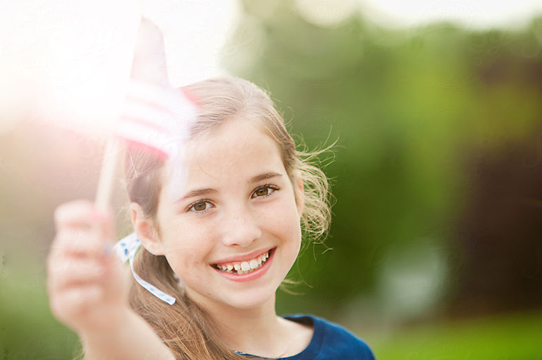 - Young Girl Waves American Flag