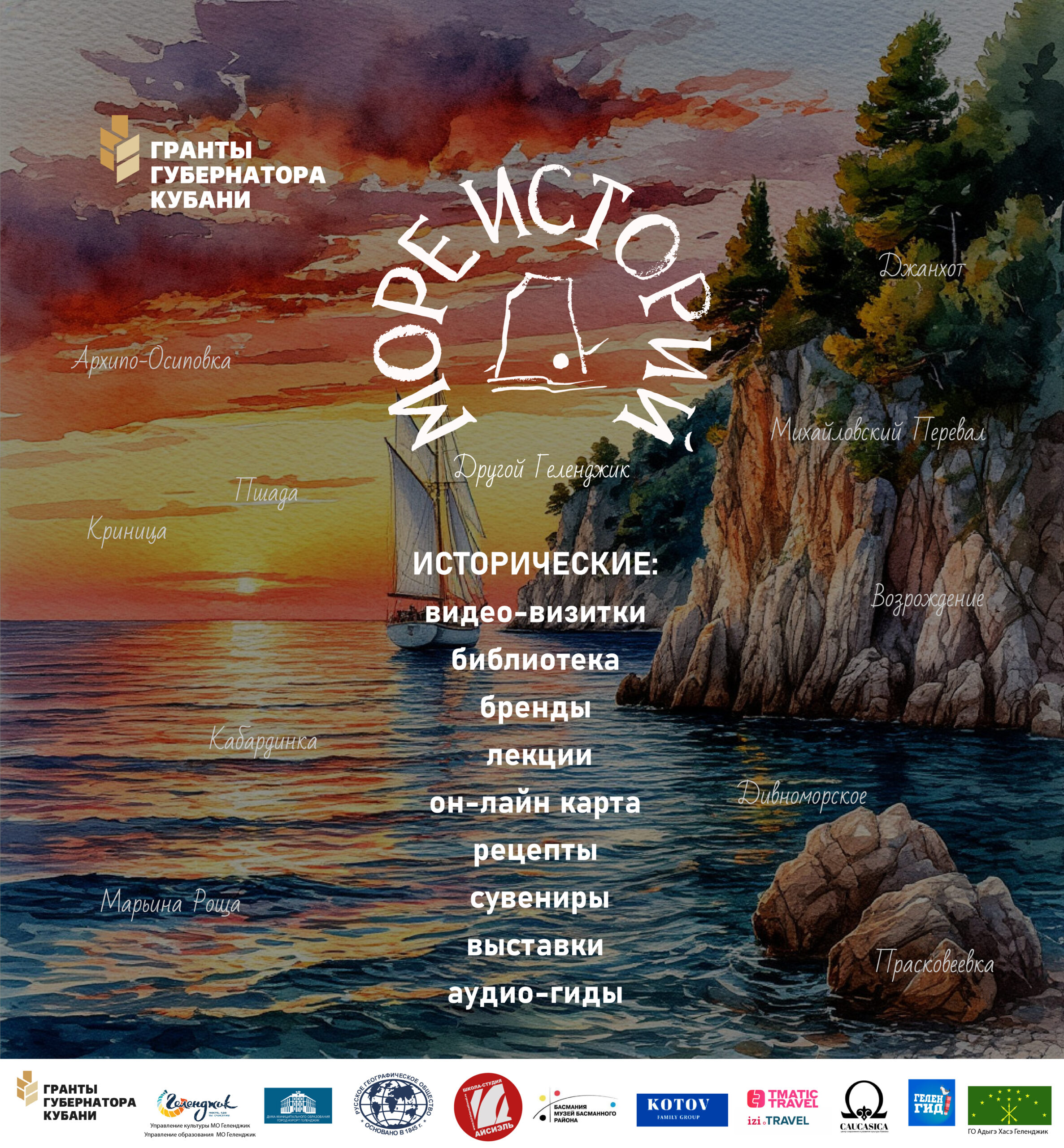 Архипо-Осиповка, Пшада, Криница, Михайловский Перевал, Возрождение, Дивноморское, Марьина Роща, Кабардинка, Прасковеевка, Джанхот – герои нашего проекта “Море историй”.